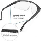 âś… ANTI-FOG DESIGN, Crystal Clear Vision, Anti-dust. Remove any Protective Film from Lenses. Before first use, adjust the temple arm to your desire length so it will help during wearing GLASSES OVER GOGGLES. Please refer one of the IMAGE for direction. Lightweight design, with adjustable length temples expands 4.72″ – 5.21″ for a customized fit Flexible temple tips minimize pinching behind the head.